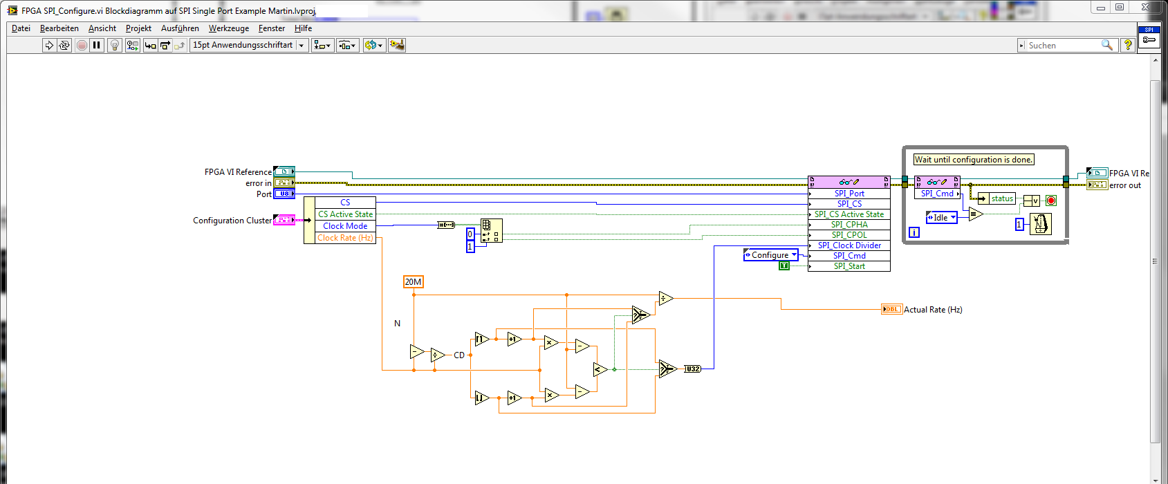 Ich bin von dem Multiport SPI sbRIO Beispiel im Labview ausgegangen und habe es versucht, an meine Konfiguration anzupassen.