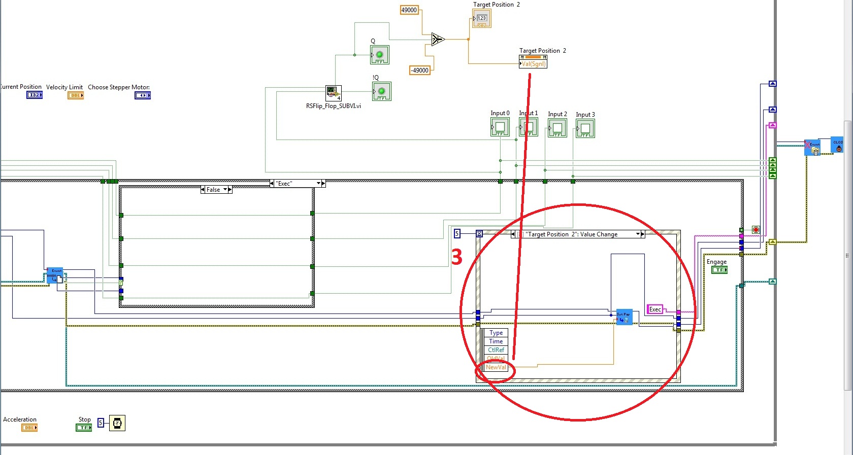 EDIT: Wenn ich aus deinem VI alles rausschmeiße, was nicht mit dem Thema zu tun hat, wird nach jedem Boolean-Event auch ein "Target Position"-Event abgearbeitet...