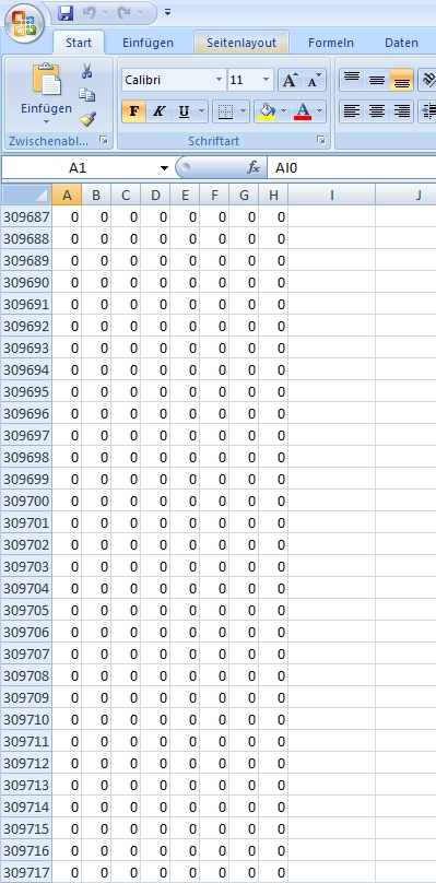 Diagramm als auch in der excel Datei keine Werte angezeigt (nur "0").