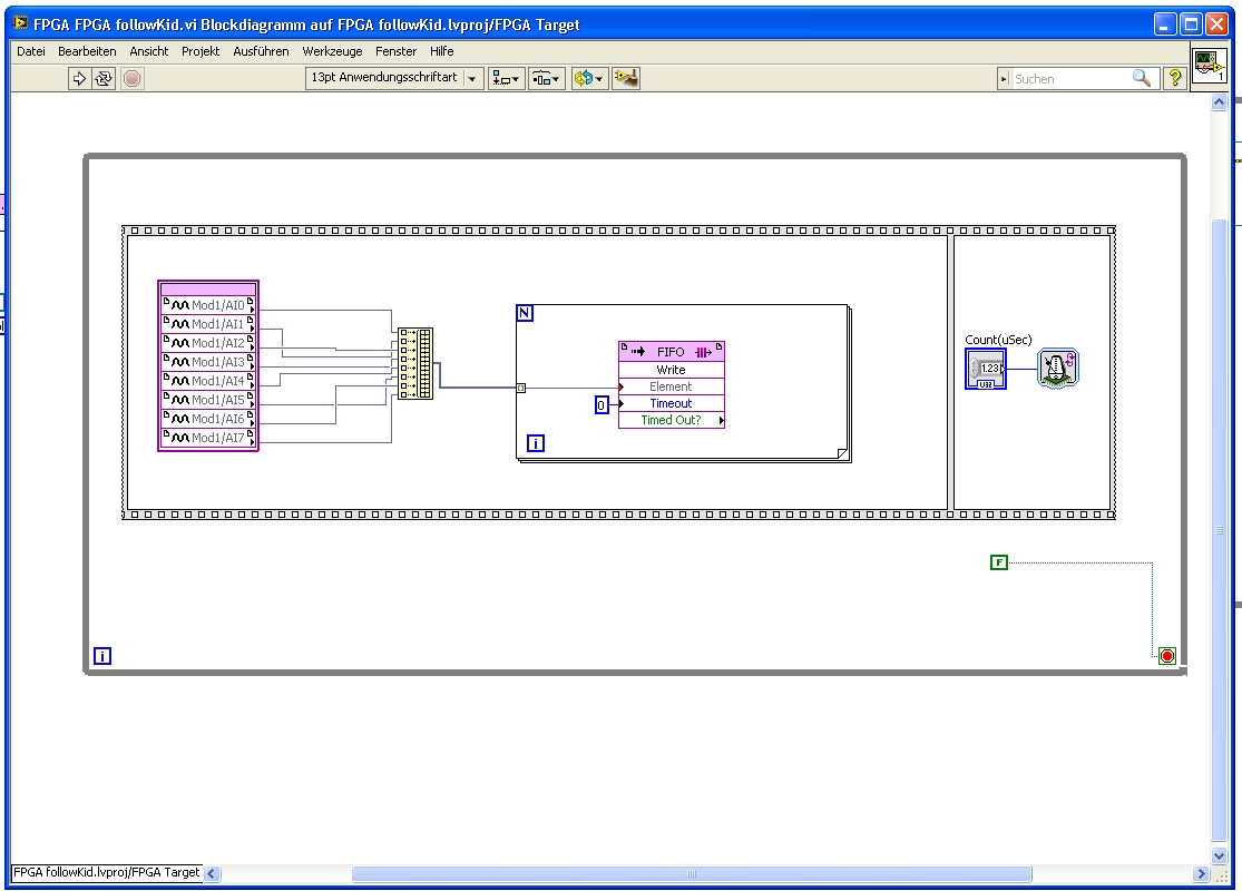 Die habe ich mittlerweile geschafft, es gehen die richtigen Daten in den FIFO rein (das sehe ich wenn ich die FPGA.vi starte). Allerdings kommen, wenn ich die Host.vi dazuschalte, keine Daten aus dem FIFO raus.