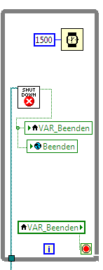 Und dann nicht das LabVIEW Exit aufrufen. Das funktioniert meist nicht nachdem man das Application Instance Close event abgefangen hat (meist darum da es vom Status des Hauptfensters abhängt, wenn es Hidden ist gehts nie, wenn es offen ist nur wenn man zwischen dem Application Instance Close event und dem LabVIEW Exit mindestens einmal den Zustand des Hauptfensters mit VI Server einmal verändert.