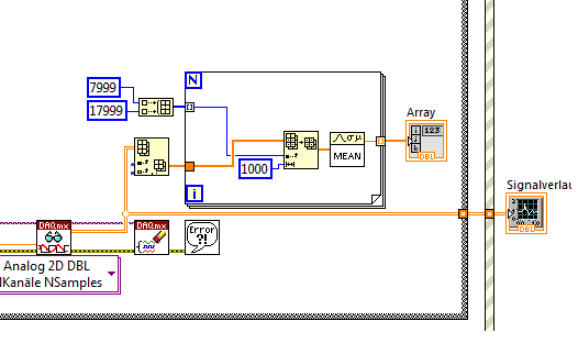 Alternativ kannst du das DAQmxRead auch so einstellen, dass du ein 2D-Array bekommst. Den genauen Namen der Einstellung habe ich aber nicht im Kopf (habe hier kein DAQmx installiert), also einfach selbst mal suchen. So viele Möglichkeiten gibt es ja nicht, wenn du mehrere Samples von mehreren Kanälen gleichzeitig lesen willst...