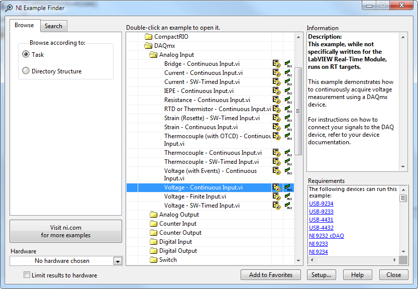 Du startest immer wieder einen DAQ-Task per DAQ-Assi neu. Dieses DAQ-Task erfasst 1000 Messwerte von 2 AI Kanälen, die Erfassungrate liegt bei 10 kHz.