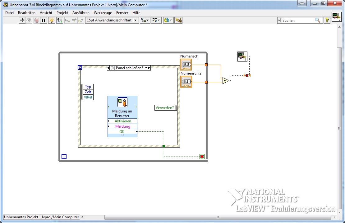 ich stolpere seit kurzem in verschiedenen Tutorials und dem Handbuch rum und versuche kleine Beispielanwendungen zu basteln um die Strukturen von LV zu verstehen.