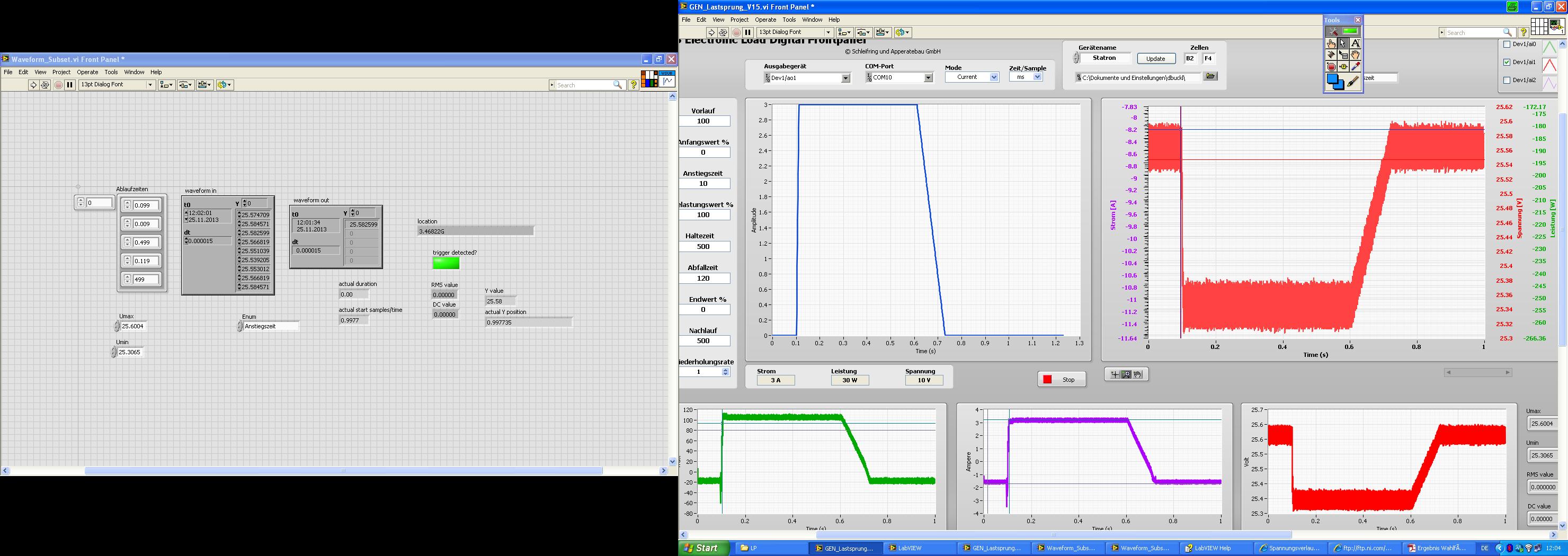 EDIT: hier in dem GEN_Lastsprung_V15.vi ist mal alles drin, also auch mit Pulsgenerator und gespeicherter Aufnahme der Antwort, einfach das gleichnamige VI aus dem Ordner GEN öffen.