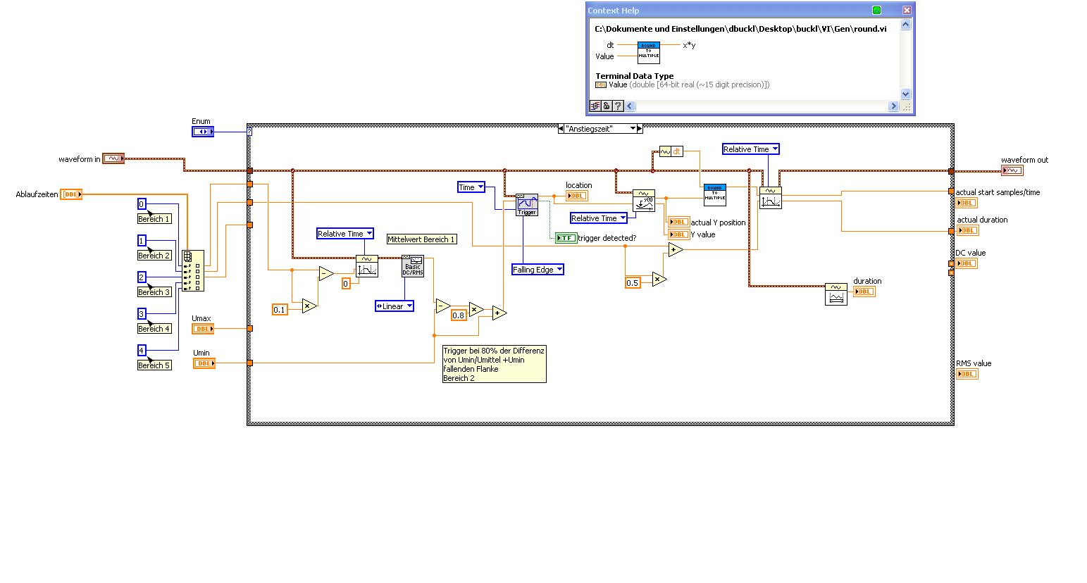 Außerdem wo multipliziere ich denn mit einer Ganzzahl? Die Ausgegebene Zeit an der der Trigger erkannt wird steht bei mir im SubVI als 0.997... ?
