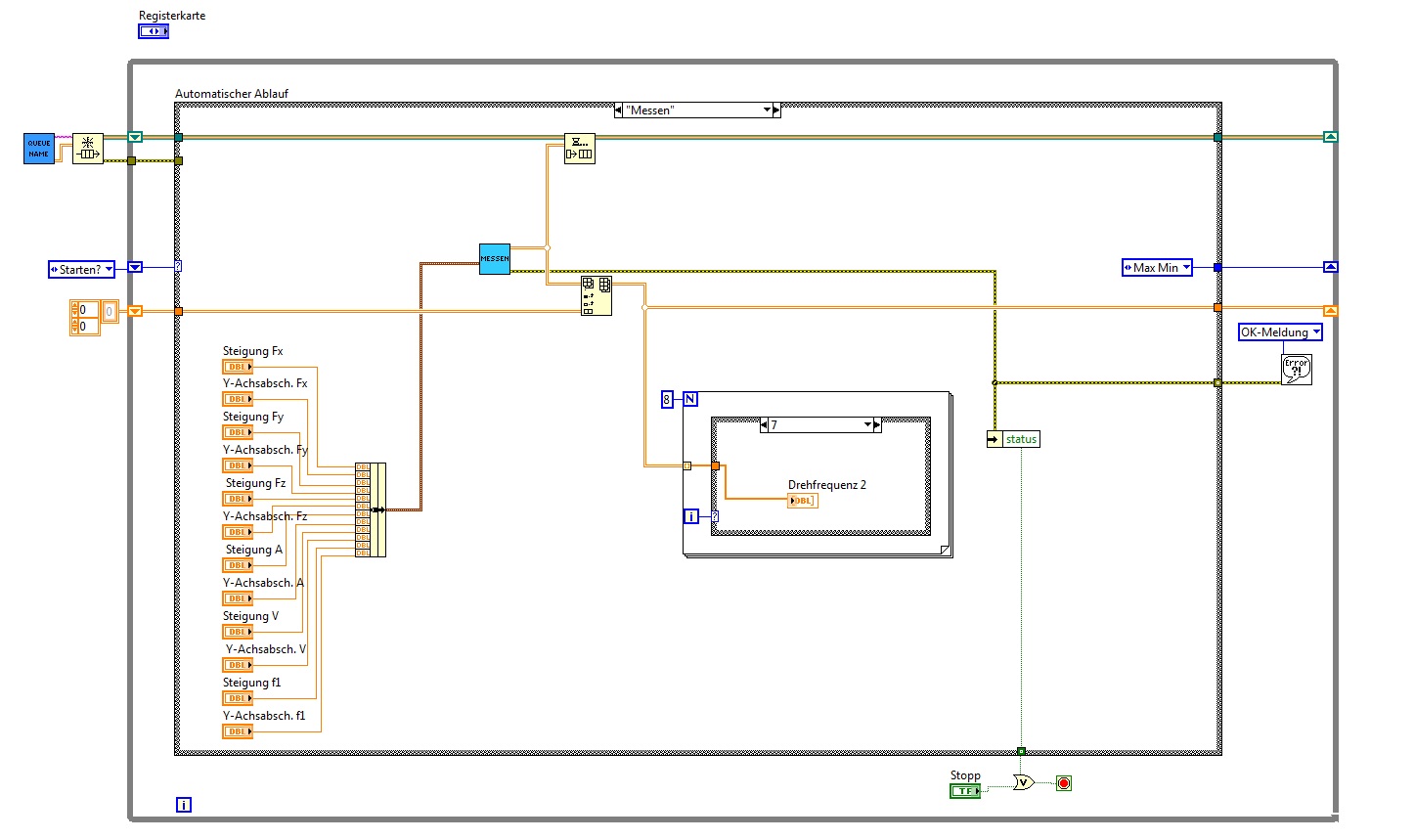 Wo wir schon beim Aufräumen sind: es ist äußerst "unüblich", den ErrorOut oben rechts anzuschließen (wie beim VI "Messen"). Es gitb einen Styleguide, der sowas beschreibt. Hast du schon mal eine Funktion von NI gesehen, die die Error-Anschlüsse oben hat?