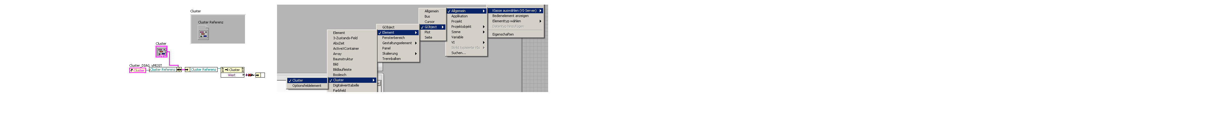 Im Haupt FP bekomme ich bei den Eigenschaftsknoten und angeschlossene Referenz auf Cluster "Cluster_DIAG_yMOST" auch den Wert raus.