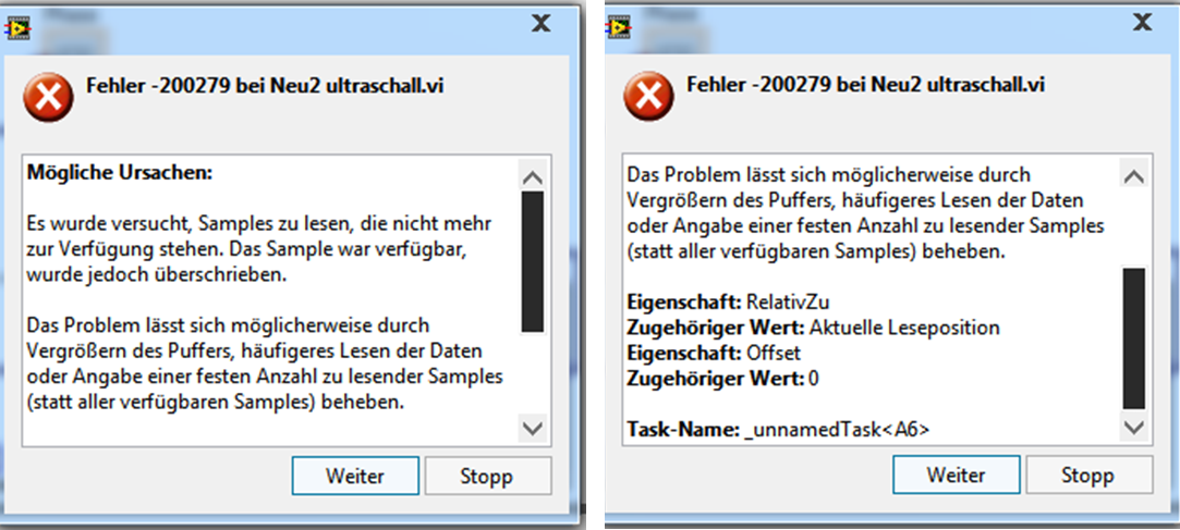 - Du hast jetzt zwei DAQmx-Tasks, die vollkommen unabhängig voneinander laufen, sowohl vom DATAFLOW als auch von der Synchronisierung. Ist das so gewollt?