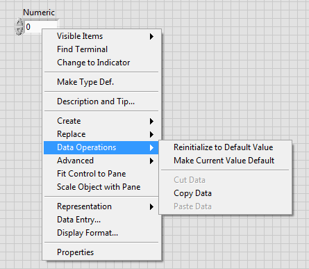Ein neuer Thread, eine neue Frage. Wenn man auf ein Frontpanel Element rechtsklickt öffnet sich für gewöhnlich ein Kontextmenü, wie man es unter Windows kennt. In diesen Kontextmenüs finden sich dann ab und an weitere Unterpunkte, die aber beim Mausover nicht sofort erscheinen. Dataoperations wäre so ein Punkt z.B.