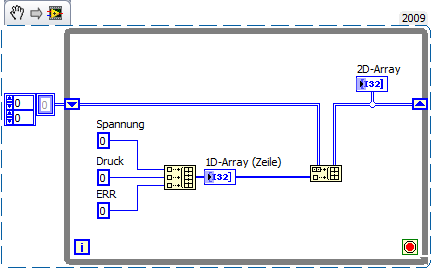 Prinzipiell ist es bei mir ja ähnlich, nur: Was ich an deinen Beispiel sehe (auch dem Hinweis mit dem Dataflow) ist, dass ich im Grunde das 1D-Array aus den 3 Werten noch gar nicht initialisieren muss, sondern dies erst später passiert. Und zwar mit dem erstellten 2D-Array.
