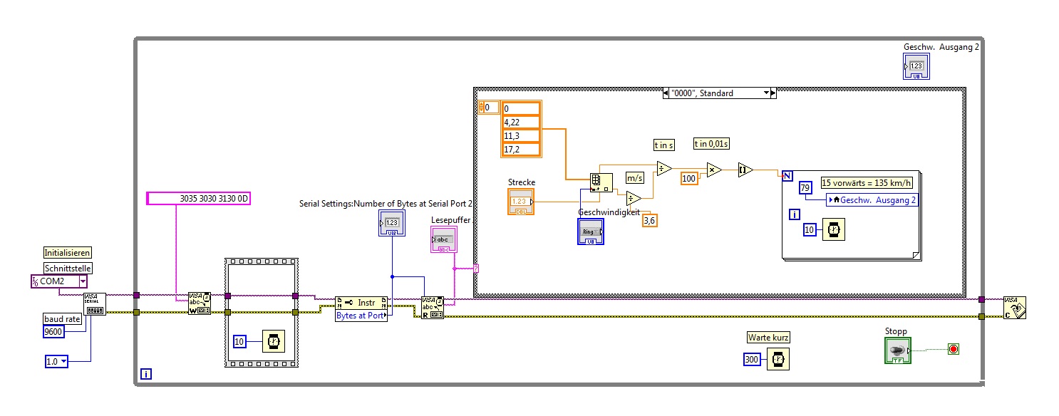 Wie kann ich es lösen, dass der linke Teil (die Schreib- und Leseaufforderung an VISA) auch abläuft, wenn die For-Schleife noch arbeitet? Bis jetzt beginnt die While-Schleife erst von Neuem, wenn die Case-Struktur und damit auch die For-Schleife fertig durchlaufen ist.