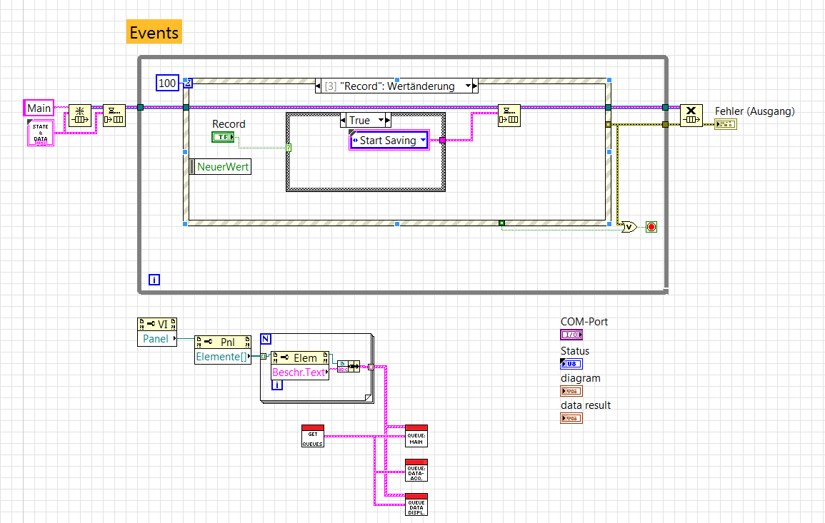 So sieht das konkret im SubVI "Display Queue" aus.