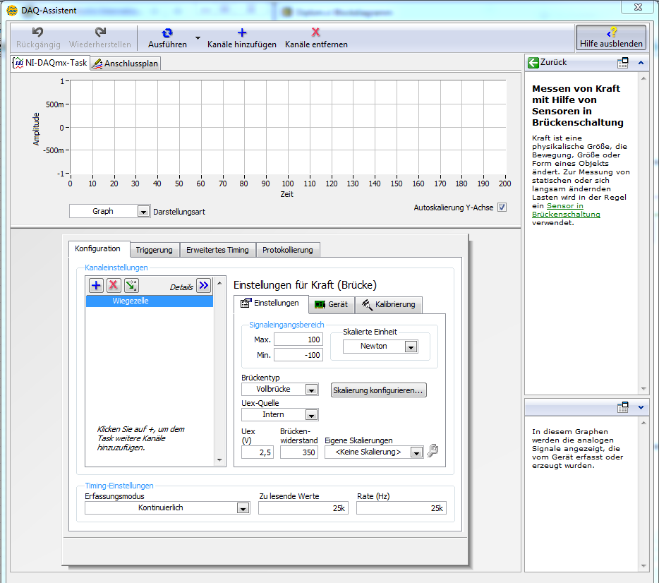 Das Signal lese ich mit dem Modul NI 9237 ein! (Beschreibung im Anhang)