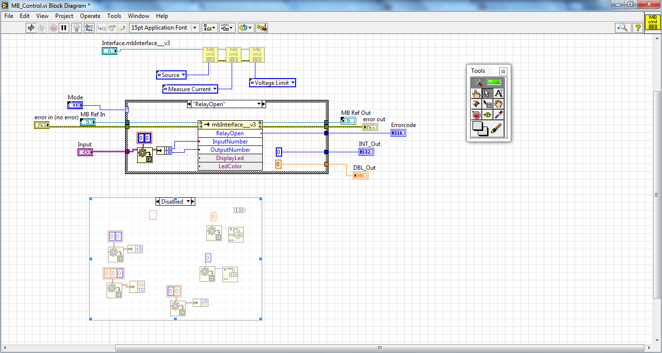 Also damit ich euch das besser erklären kann, was mein Wünsch/Problem ist, lade ich Software-Interface von mb und ein Labview Code wo DLL Schnittstelle verbunden ist (MB-Treiber).