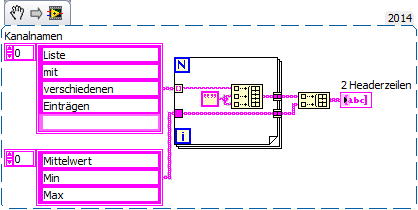 Du benötigst trotzdem als Input nur ein 1D-Array mit deinen Messkanal-Namen für die erste Zeile. Die zweite Zeile mit Mittelwert/Min/Max kann man einfach programmatisch erzeugen!