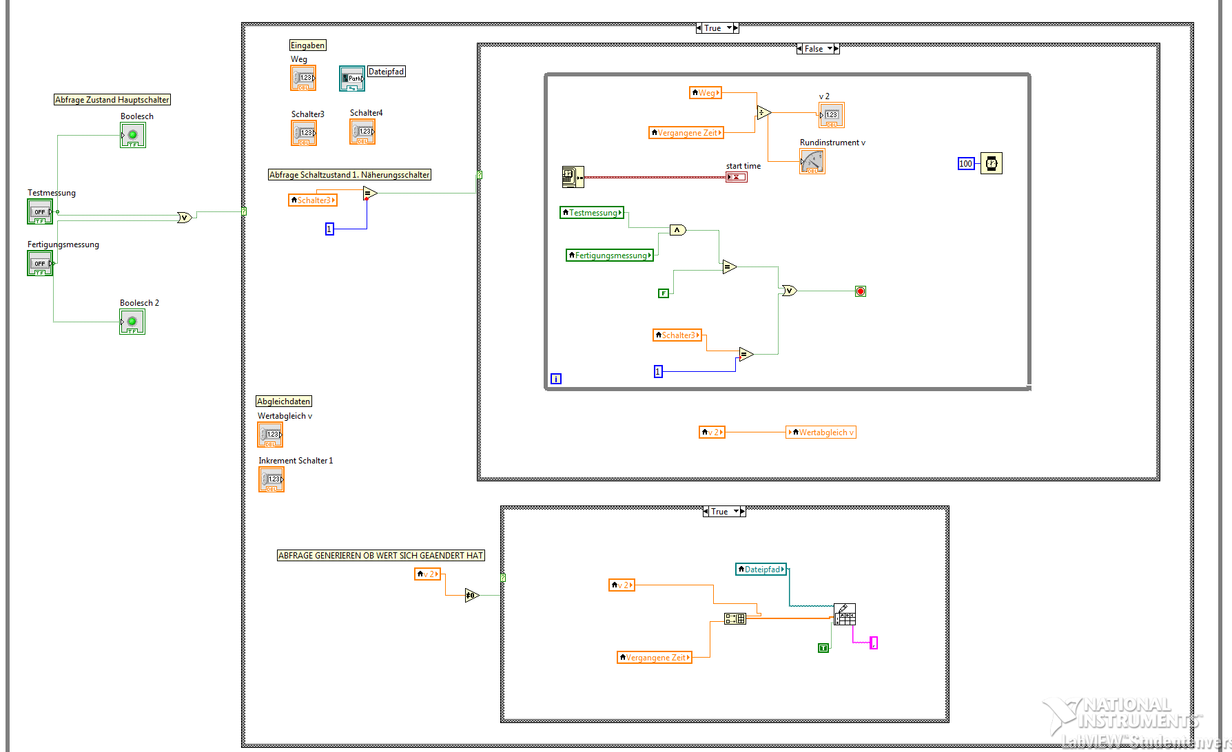 ich bin blutiger Anfaenger in Labview und habe mich die letzten Wochen ein wenig eingearbeitet. Zur Zeit arbeite ich an einem Projekt, dass quasi zwei Naehrungsschalter zur Geschwindigkeitsmessung nutzt. Hierbei sollen die Werte anschließend in eine Tabelle abgelegt werden.