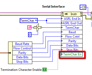Hier scheint es notwenig zu sein, die Eigenschaft "Message Based Settings:Termination Character Enable" bei der Konfiguration der seriellen Schnittstelle hinzuzufügen und auf TRUE zu setzen.