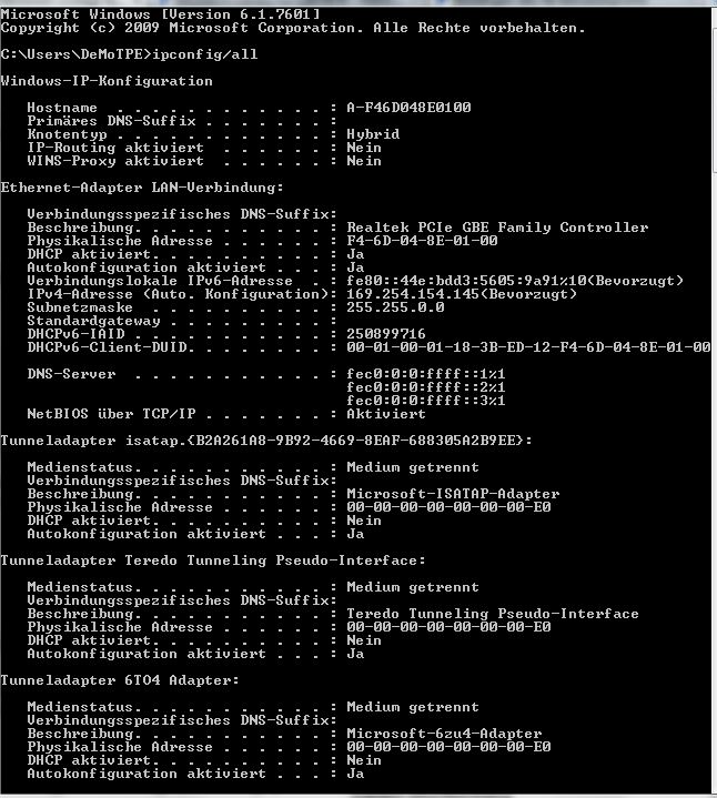 Hier ist die ipconfig. Ich hoffe, dass das gemeint ist.
