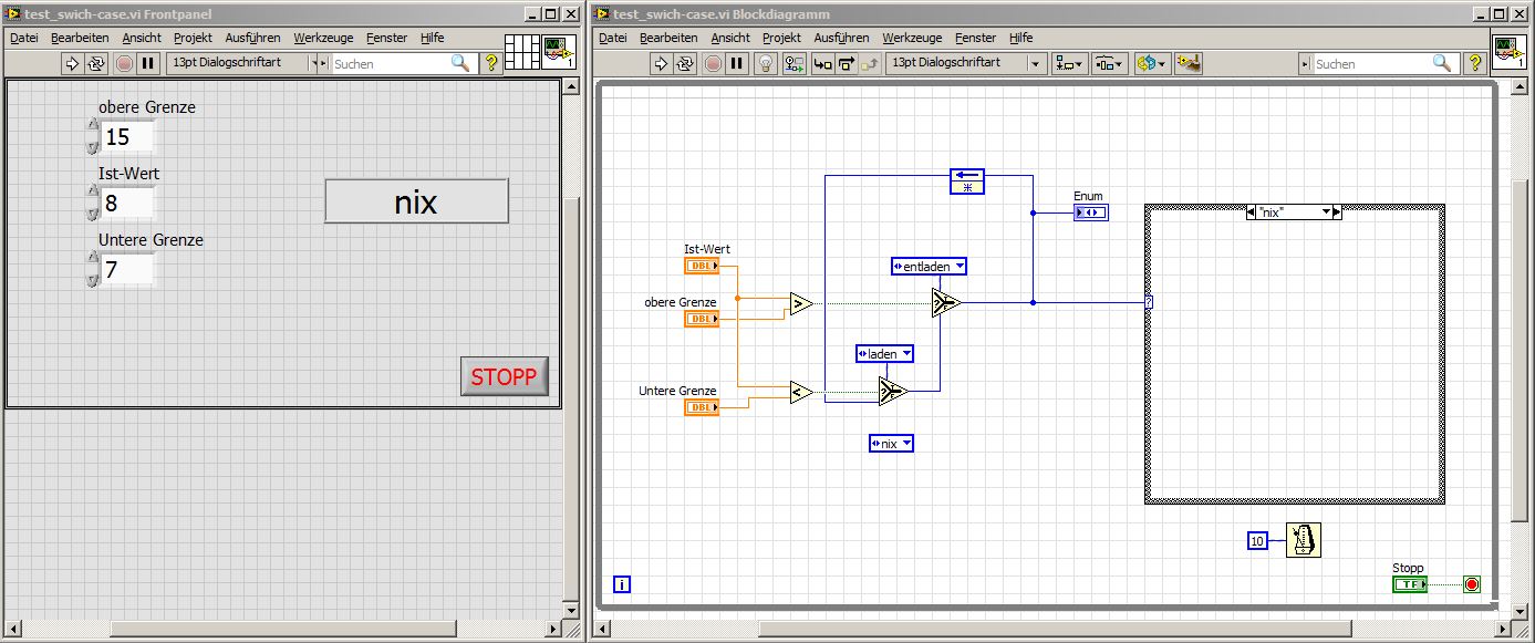 Zitat:Die Case-Struktur in Labview ist aber eine If-Else-Abfrage, kann also nur Ereignis und Gegenereignis.