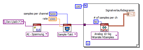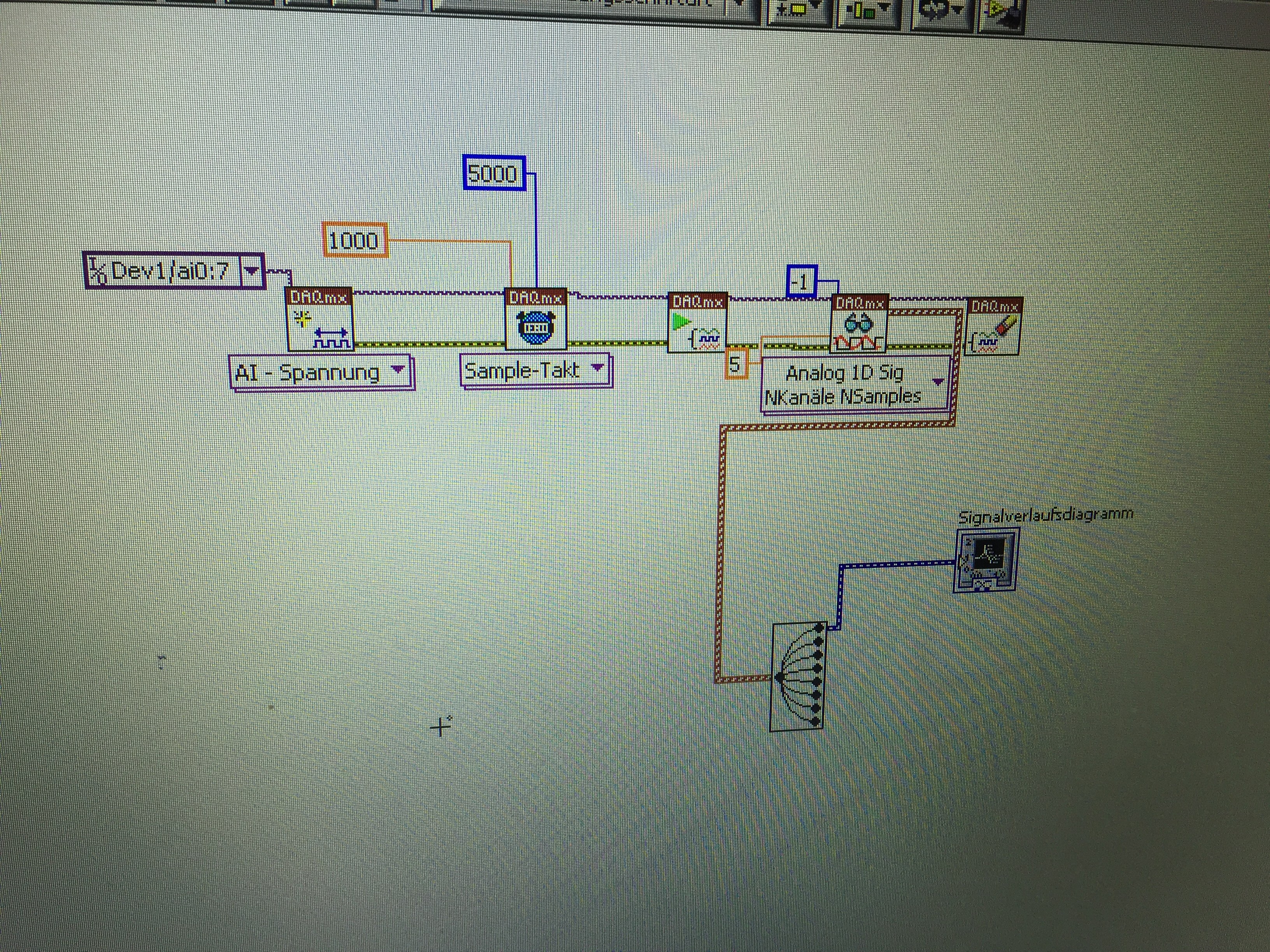 Das heißt also ich soll eine zeitgesteuerte Schleife benutzen?! Das habe ich schon versucht. Wenn ich allerdings eine Timing-Quelle 1kHz benutze und ein dt von 1 einstelle, dann sollte ich doch 1000 Messwerte pro Sekunde auslesen. Also muss doch beim 5000 Schleifendurchlauf Schluss sein und ich habe exakt 5 Sekunden lang gemessen ( das will ich erreichen) , oder nicht?