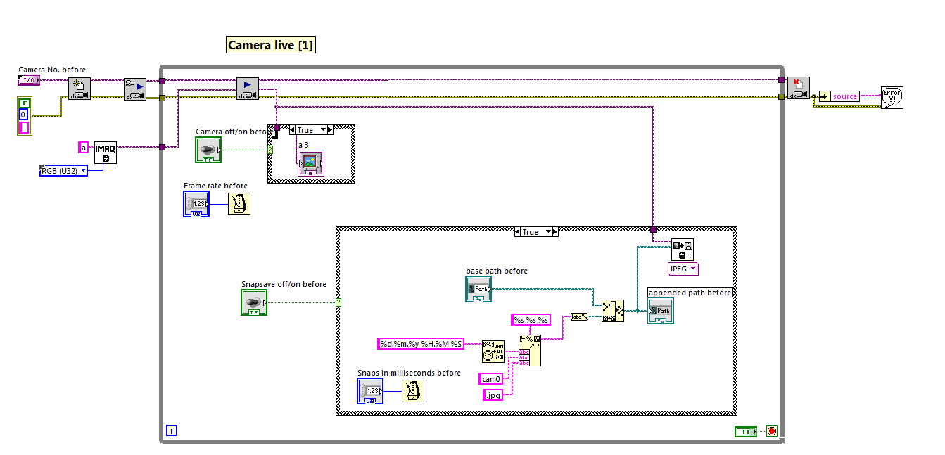 Wie im unten zusehenden Screenshot habe ich eine bzw. zwei USB-Kameras in LabVIEW eingebunden. Das Bild wird ausgegeben und die Frequenz ist einstellbar. Jedoch wird, wenn der Speichvorgang zusätzlich gestartet wird, die Bildspeicherfrequenz auch als Bildausgabefrequenz heran gezogen. Wie bekomme ich es hin, dass die Bildausgabefrequenz unabhängig bleibt?
