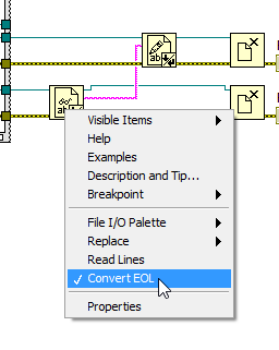 Aktuell liest du das Bild mit "Read from Text File", hast aber die Option "Convert EOL" (Rechtsklick auf das VI) aktiv. Jedes Auftauchen einer Byte-Folge \r\n (Carriage Return + Newline) wird somit in ein \n (nur Newline) konvertiert. Mist.