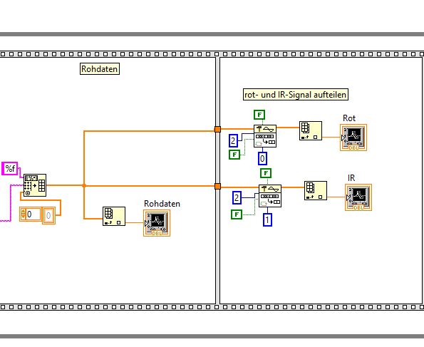 Was ich damit erreichen wollte, dass das obere decimate jedes 2te Signal ab Messwert 0 nimmt und das untere decimate jedes 2te Signal ab Messwert 1 nimmt. Somit ich dachte ich z.B. (Messwert 0 rot, 1 ir, 2 rot, 3 ir usw.).