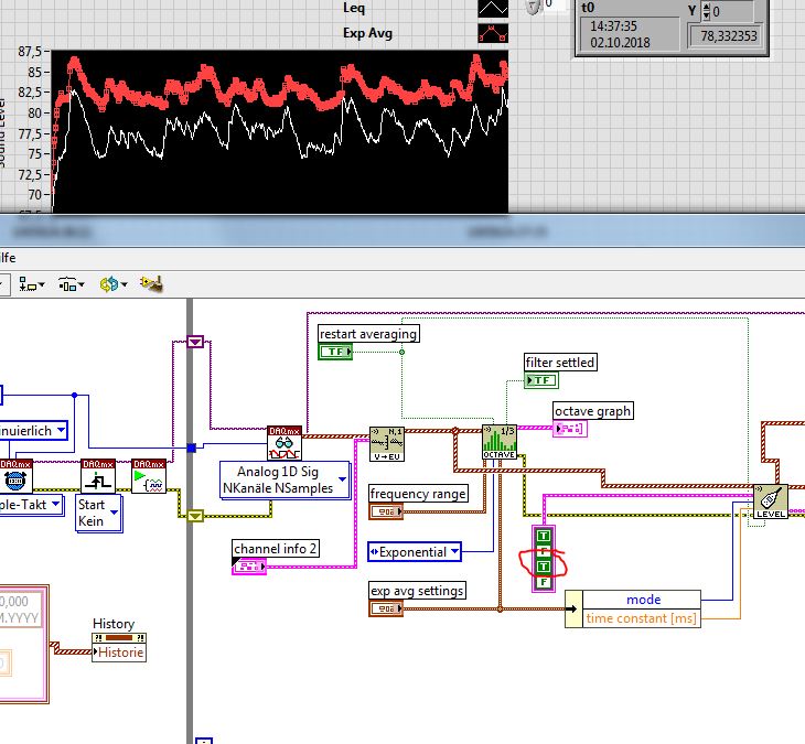 ich möchte im anhängenden Beispiel den Schallpegel meiner Signale anzeigen, und in einem Verlaufsdiagramm anzeigen. Ich habe dazu recherchiert, und wollte mit Hilfe der History die Aufgezeichneten Signale aus der Schleife in ein Array schreiben, so dass ich den Verlauf anzeigen kann.
