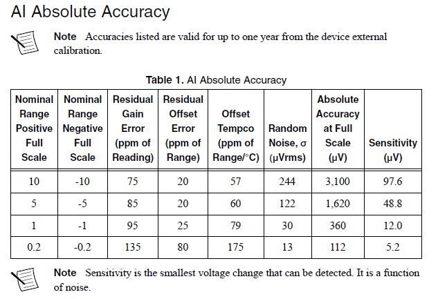 ich benutze zurzeit die Messkarte NI-6229, um ein Spannungssignal von knapp 3 mV zu messen. Nun ist es so, dass ich die Genauigkeit meines Spannungswertes ermitteln möchte.