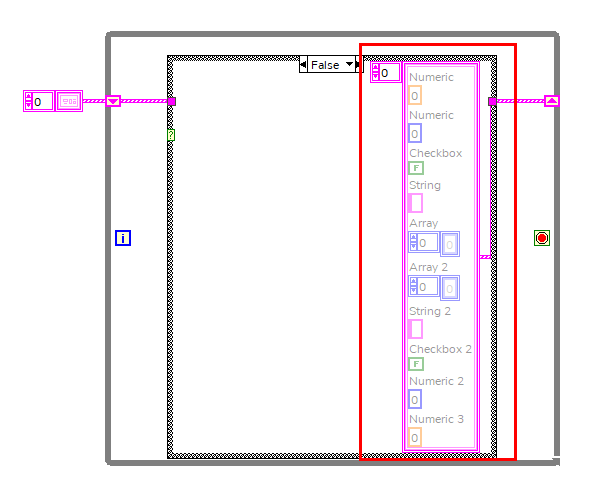 (16.10.2019 08:33 )GerdW schrieb:  - evtl. ein subVI verwenden, welches nur den Array-/Cluster-Datentyp bereitstellt