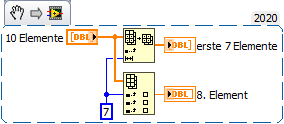 Dann kann man mittels ArraySubset die ersten 7 Samples wie gezeigt weiterverarbeiten und für die anderen 3 nimmt man ArrayIndex ab Index 7 (bis 9), um an die Einzelwerte zu kommen.