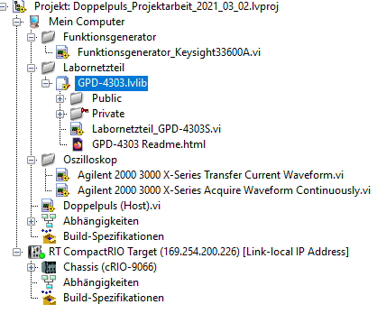 Im Ordner Labornetzteil möchte das Beispiel VI "Labornetzteil_GPD-4303S.vi" sogar dass die Public und Private Ordner direkt im Projekt mit eingefügt werden und auch im selben Ordner liegt. Habe euch, wenn ich das VI mal ein eine Ordnerebene höher ablege, die Fehlermeldung mal abgelegt.