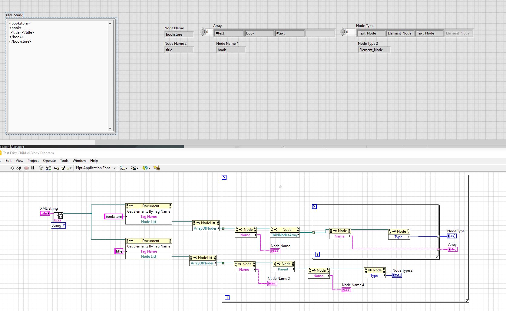 Wenn ich von einem Knoten den nächsten Unterknoten aufrufen möchte, wird dieser immer zu einem Text_Node. Deswegen habe ich einen simplen Versuch gemacht. Ich rufe den selben Knoten einmal von "oben" auf ( First Child, Knoten wird zum Typ Text) und einmal von "unten" (Parents, Knoten bleibt beim Typ Element). Obwohl ich beide mal bei dem Knoten <book> laden müsste.