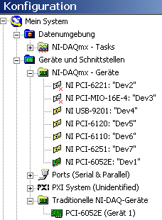 Du hast recht, aber trotzdem, im Datenblatt ist die Rede von DAQmx. Ich habe jetzt kein Lust mehr hier mitzumachen, wenn von Dir, abgesehen von Kartennummern mit Zahlendrehern, überhaupt keine verwertbaren Informationen kommen. Ist die Karte denn nun im M&A-Explorer als DAQmx Gerät, als traditionelles Gerät oder als beides gelistet? Das sieht man doch sofort und wäre wichtig und für Dich wären das höchsten drei Worte.