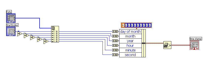 Kannst du denn den gelesenen String - ohne Umwandlung in ein Byte-Array - nicht direkt mit "String to Number" umwandeln? Du müsstest ja nur den String vorher splitten, das wird mit den String-Funktionen (Match Pattern, Split String) ja wohl gehen...