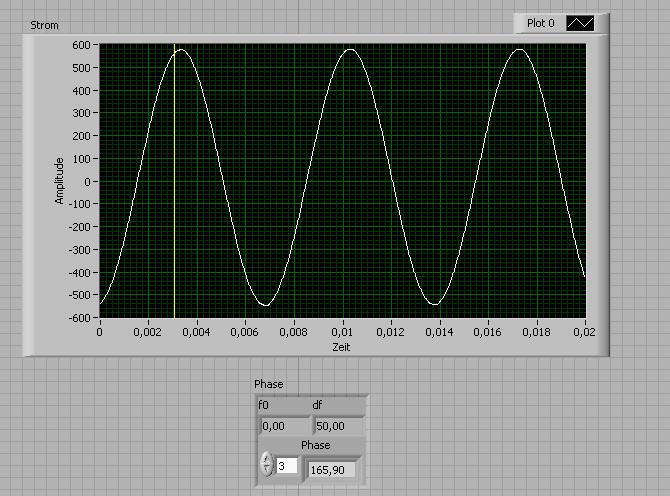 Ich lege ein 50Hz Sinussignal an, es wird mir angezeigt 130°, stimmt genau, dort liegt der pos. Nulldurchgang.