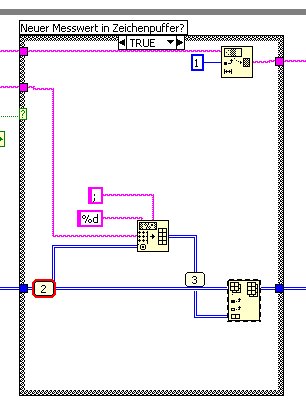 Mit "In Array einfügen" wollte ich nun die neuen Messwerte in einen Ringpuffer schreiben, in dem die Messwerte gespeichert werden sollen. Leider funktioniert das so nicht. Bei ejdem Durchlauf ändert sich die Dimension des PufferArray von 0x0, 1x0, 2x0, ..... aber es werden keine Messwerte gespeichert.