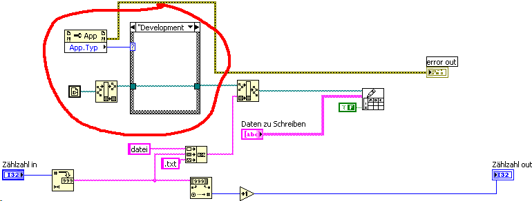 Der Property-Node gibt an, ob das VI in der Entwicklungsumgebung oder als eigenständige Applikation (EXE-Datei) läuft.