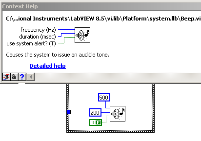 Wenn man das Beep.vi so wie in meinem Screenshot in Beitrag #2 beschaltet, hört man (einen interen Lautsprecher vorausgesetzt), auch einen Ton mit entsprechender Dauer und Frequenz! Probiert's aus! Das ist aber richtigerweiße kein "System Beep"...