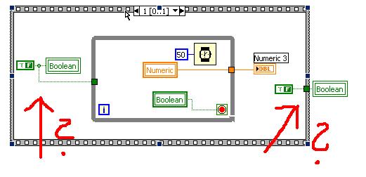 Nachtrag: Ich arbeite mit Switch when pressed, deshalb muss der Button wieder zurückgesetzt werden. Daher das schreiben eines FALSE-Wertes in lokale Variable. Das Weiterführen links im Bild soll nur Ablaufreihenfolge sicherstellen (erst schreiben Variable, dann Ausführen While-Loop). Auf die Ablaufreihenfolge im Highlight-Modus darfst du dich dabei NICHT verlassen.