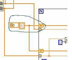Das ist ein Shift-Register (dt. Schieberegister), Rechts-Klick auf Rand der Schleife -> Create -> Shift-Register.