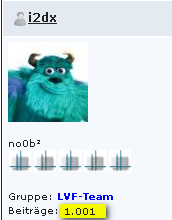 Und der nächste LVF-Guru. Wurde auch mal Zeit, dass du dich zu den erhabenen Users mit mehr als 1000 Beiträgen gesellst.Lol