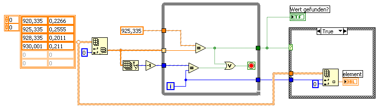 Bisher lese ich mit der Funktion "read from spreadsheat" die Textdatei ein und lasse sie mir als 2D Array darstellen. Wie ich nun nach definerten Werten suchen kann, ist mir noch nicht eingefallen. Vielleicht könnt Ihr mir ja helfen.