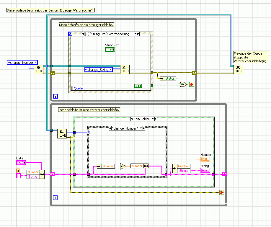 Wie mache ich das denn, wenn sich Daten ändern und in Controls neu geschrieben werden? In meinen Beispiel werden ja immer beide Controls (Number und String) neu mit Daten gefüllt, wenn die Consumer-Schleife was gemacht hat. Packe ich dann die Controls in die Case-Struktur? Aber was ist, wenn mehrere Cases das gleiche Control füllen? Operiere ich dann mit lokalen Variablen?