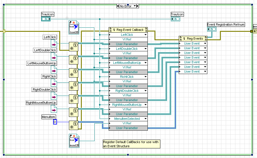 Habe aber schon herrausgefunden, dass dieser Fall nicht mehr auftritt, wenn man RegisterEventCallBacks.vi während der Ausführung ebenfalls offen hat. Schließt man dieses VI, wird auch die Application beendet und das Icon verschwindet. Bloß warum ?