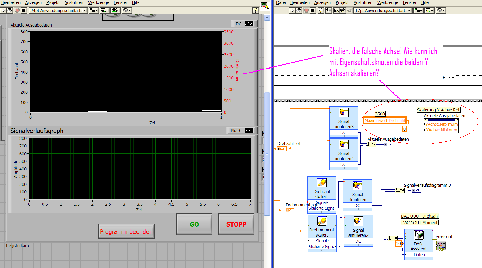Eigenschaftsknoten - Skalierung von 2 Y Achsen |