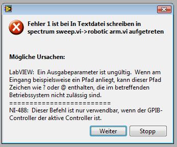 Leider treten bei der Ausführung an den rot markierten Stellen bei "Write to Text File" bzw. "Set File Position" diese Fehlermeldungen auf: