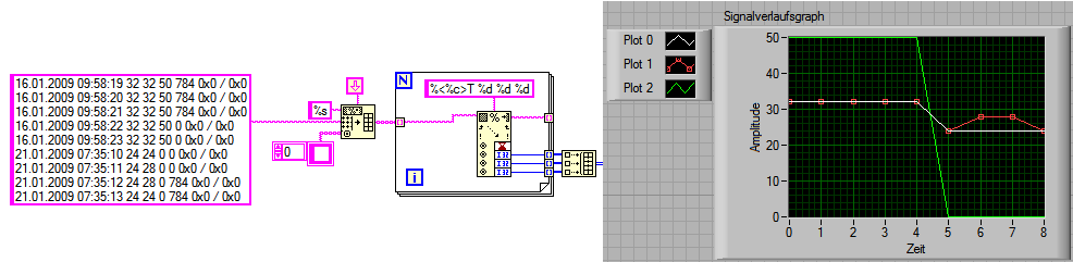 LabVIEW erstellt die Zwischenräume selbstständig, die interessieren mich aber nicht, da hier ja kein Loggerbetrieb war!