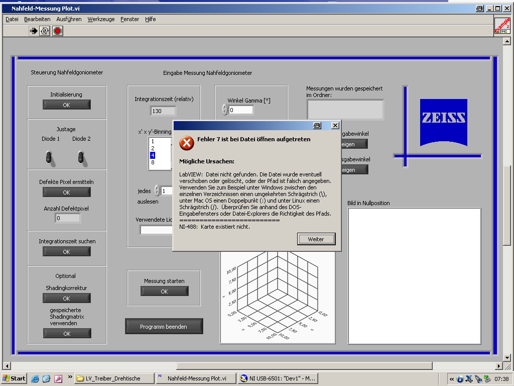Hast du überhaupt irgendein GPIB-Gerät dran hängen? Woher soll ich das jetzt wissen? Wenn nein, dann gilt der File-Öffnen-Fehler.